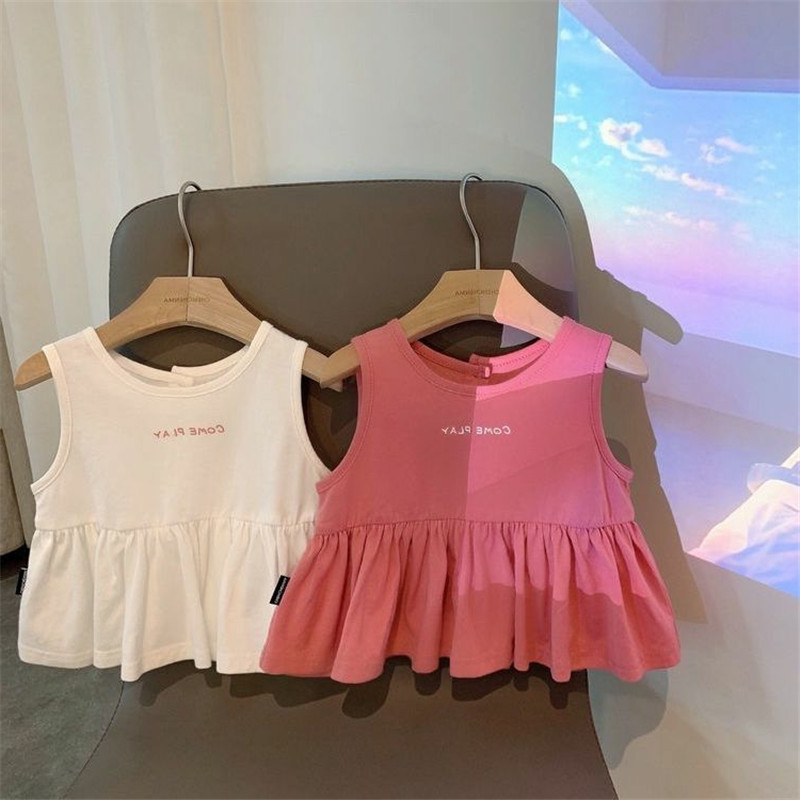 女童夏装背心T恤宝宝洋气儿童个性潮韩版字母拼色网红娃娃衫上衣