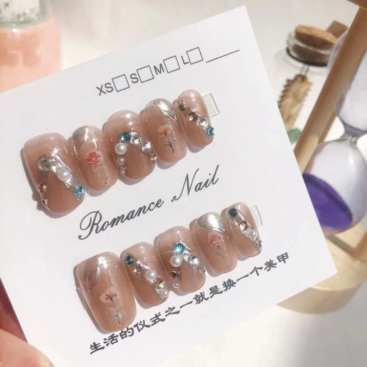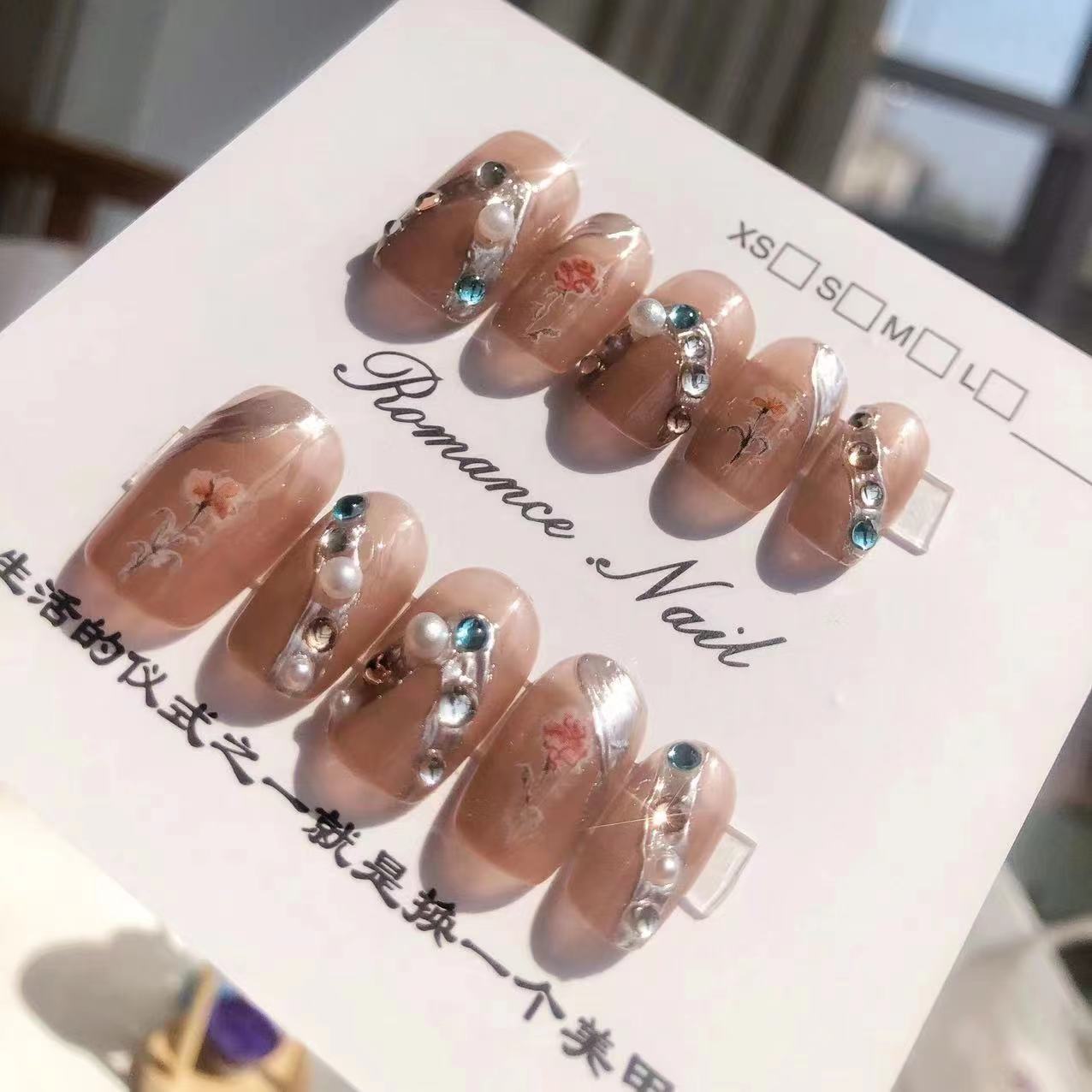 手工穿戴甲年新款清透裸色堆钻显白美甲中国复古风小红书同款