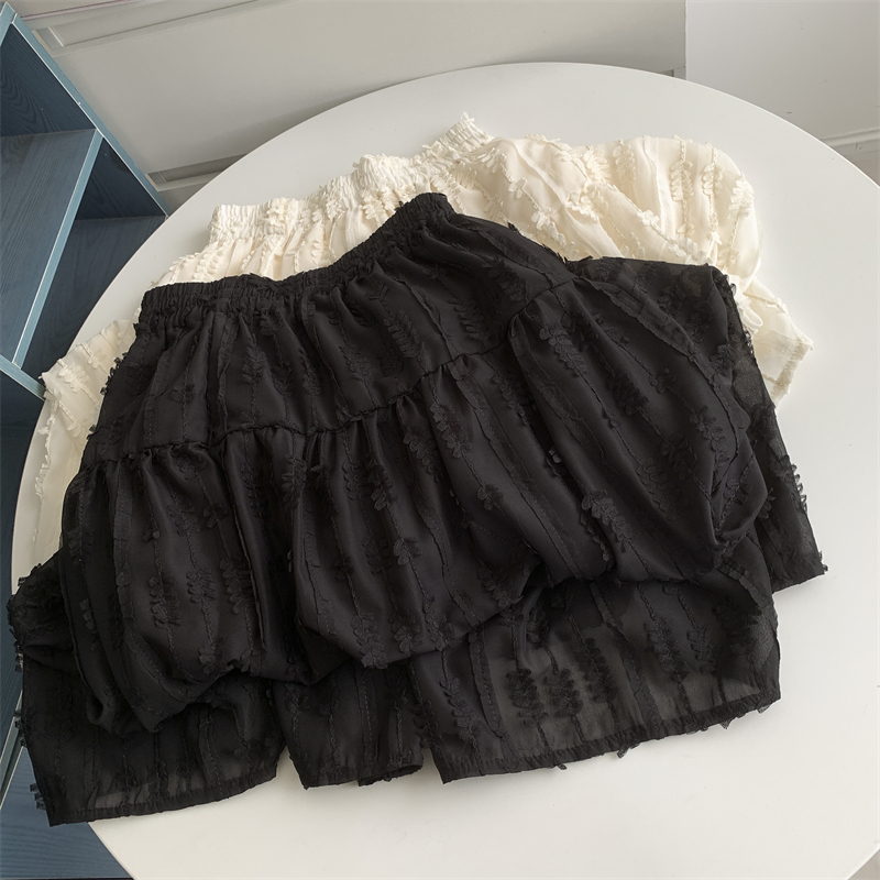 黑色花苞短裙女夏季2025新款高腰显瘦a字蓬蓬裙法式冰丝灯笼裙裤