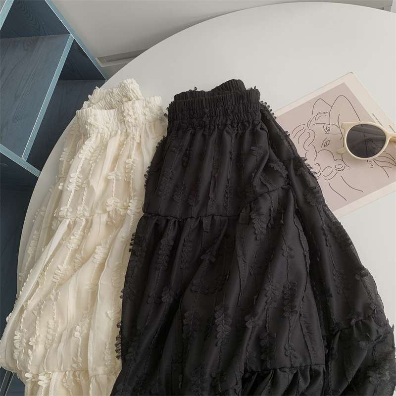 甜美网纱蕾丝半身裙学院风夏季松紧高腰显瘦绣花A字大摆蛋糕裙女