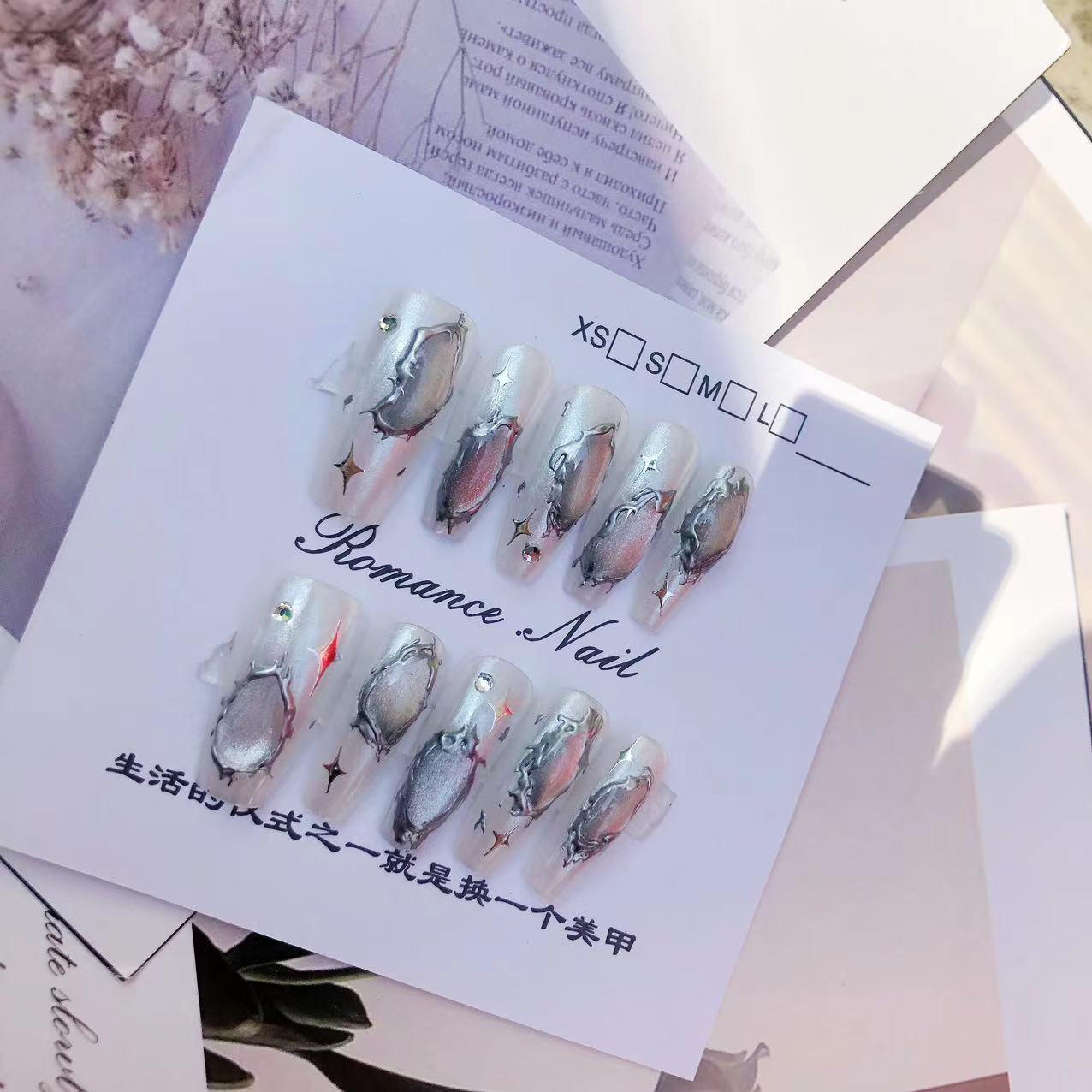 纯手工穿戴甲法式魔镜粉光疗甲片女暗黑甜酷风甲片可拆卸重复使用