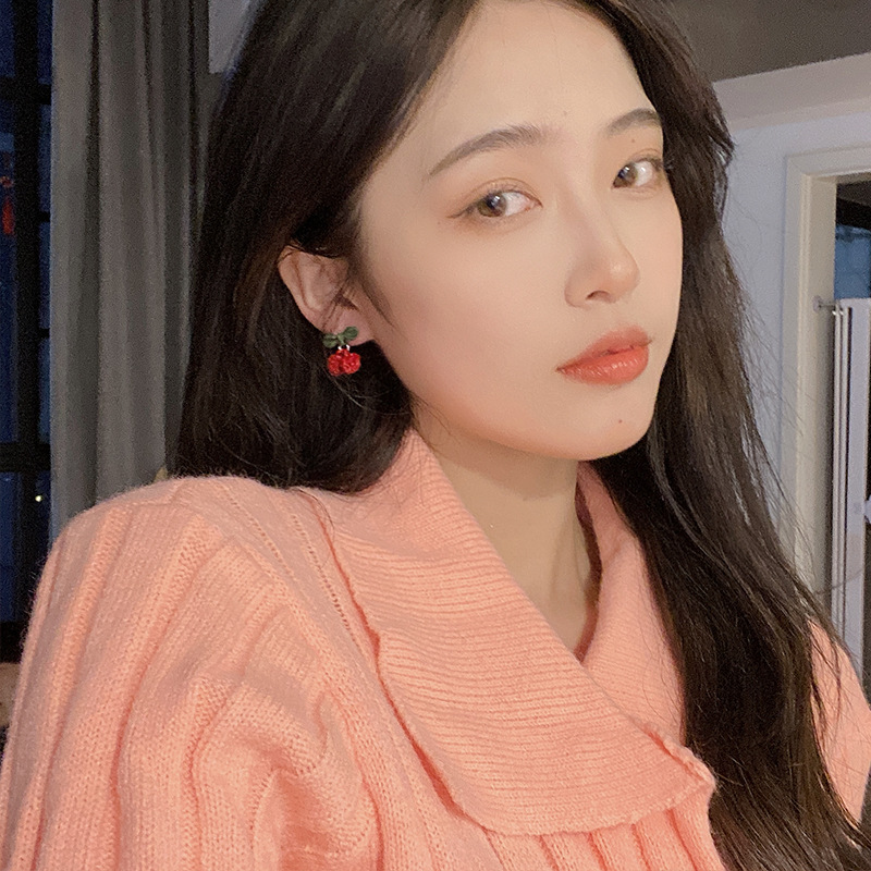 夏季甜美可爱樱桃耳环气质撞色设计感网红耳钉新款潮耳饰品