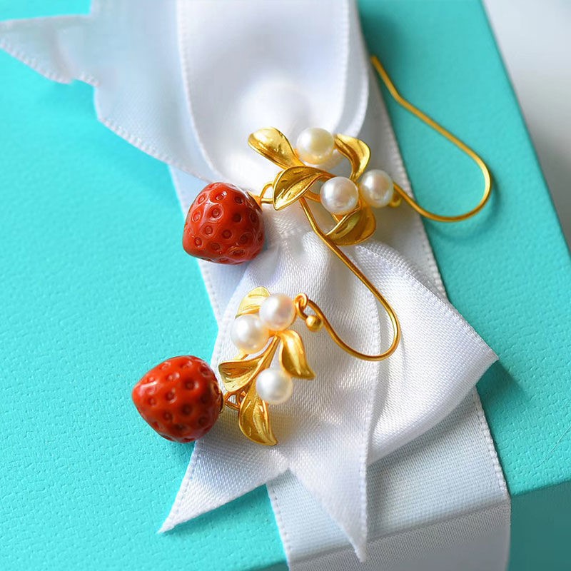 仿满肉南红草莓耳环耳线镀金色气质耳钩简单首饰简约饰品送长辈礼