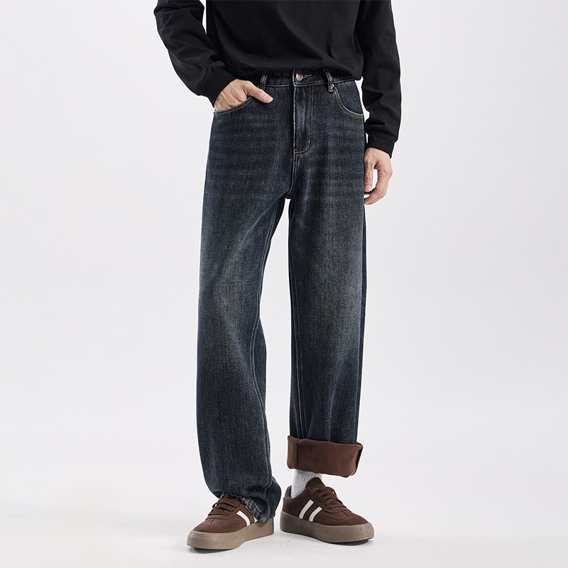 2025冬季重磅复古合奥粒绒牛仔裤男士宽松直筒加绒加厚保暖长裤子