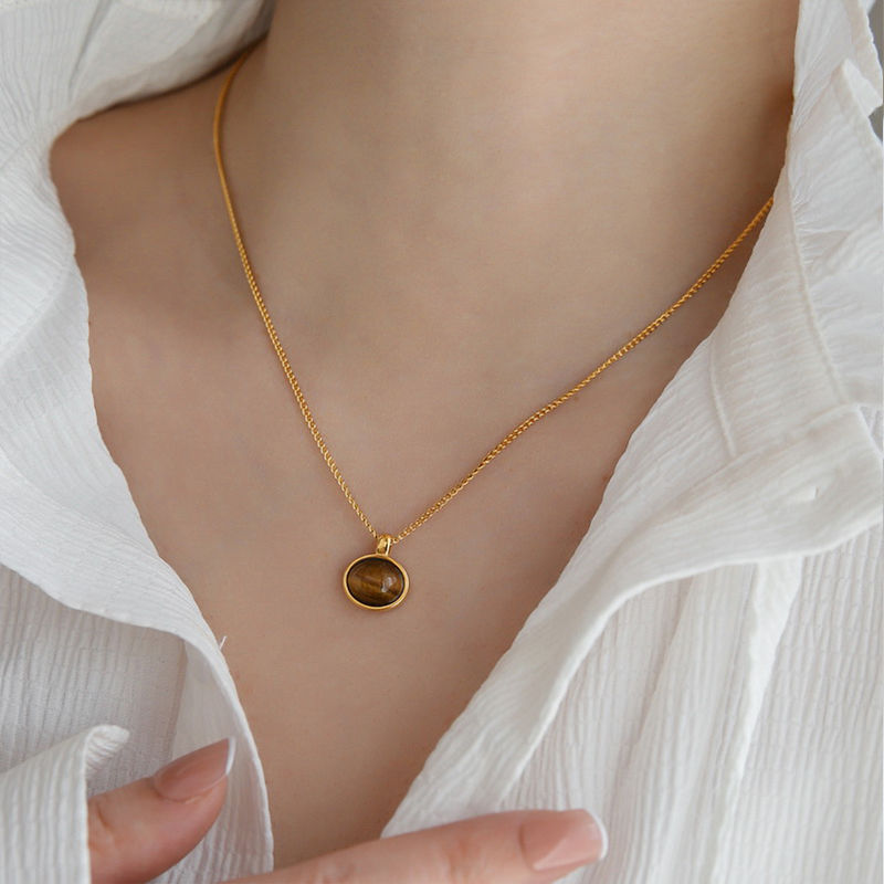 巴黎风优雅点缀~轻熟风天然虎眼石项链高级感设计送爱人锁骨链ins
