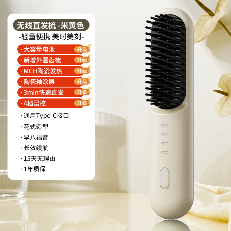 无线懒人直发梳负离子护发不伤发便携式充电造型梳卷直两用不插电