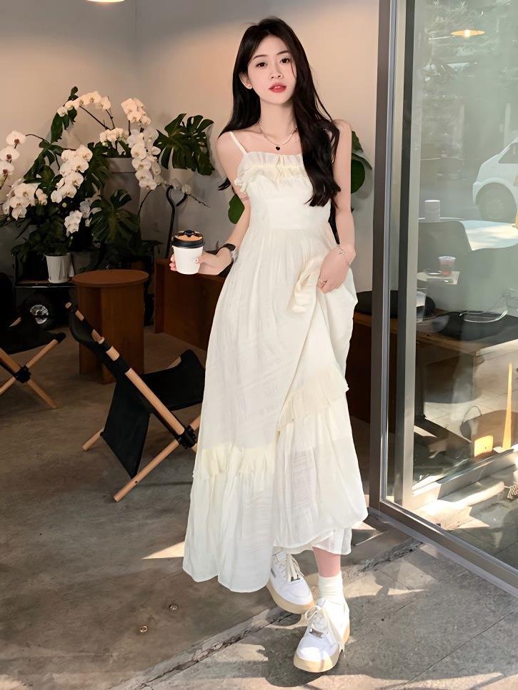 木耳边吊带连衣裙女夏季新款甜美法式收腰显瘦设计感超仙长裙