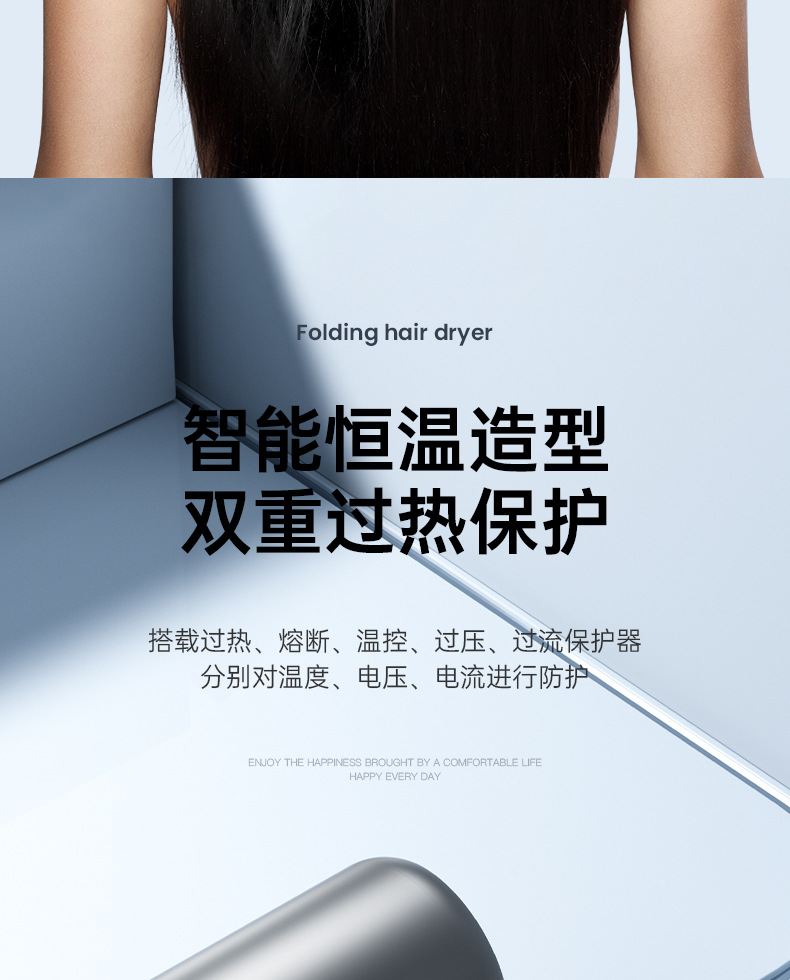 新款折叠家用速干电吹风机便携式酒店蓝光T型学生宿舍锤子吹风筒