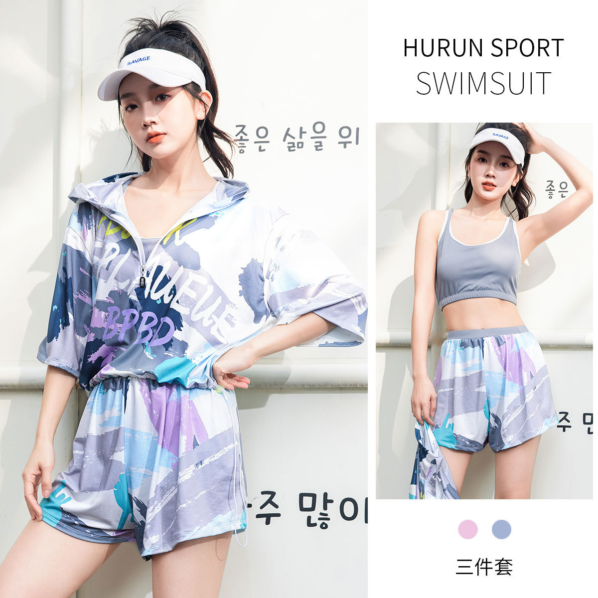泳衣女分体平角学生大码微胖三件套显瘦遮肚保守温泉游泳衣