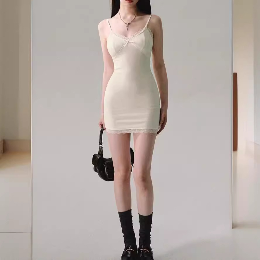 纯色蕾丝针织吊带裙女夏季简约亲肤内搭裙
