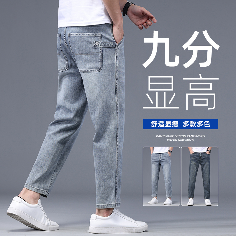 直筒牛仔裤男款夏季薄款九分裤美式潮流青少年帅气锥形休闲裤子男