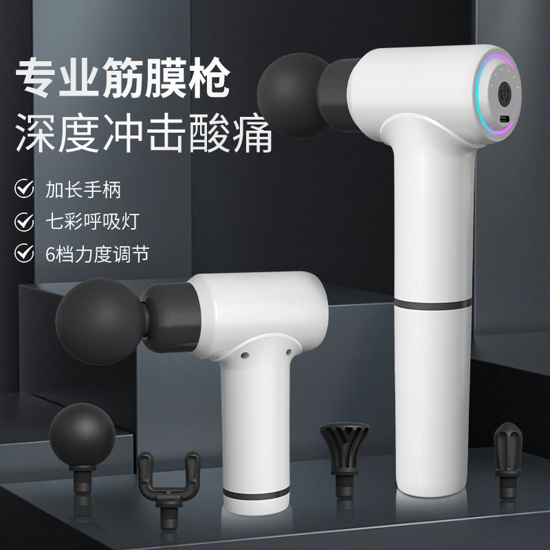 加长筋膜枪七彩呼吸灯电动按键款按摩枪肌肉保健运动健身按摩器