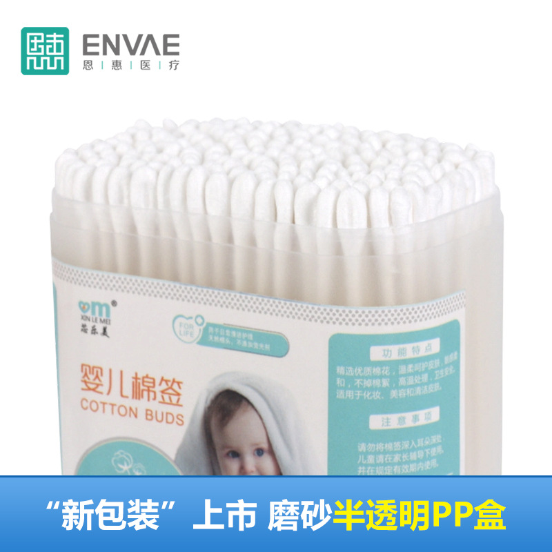 婴儿棉签200支装双头纸轴新生儿宝宝耳勺螺旋掏耳清洁一次性细轴