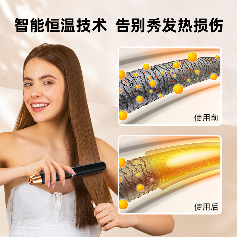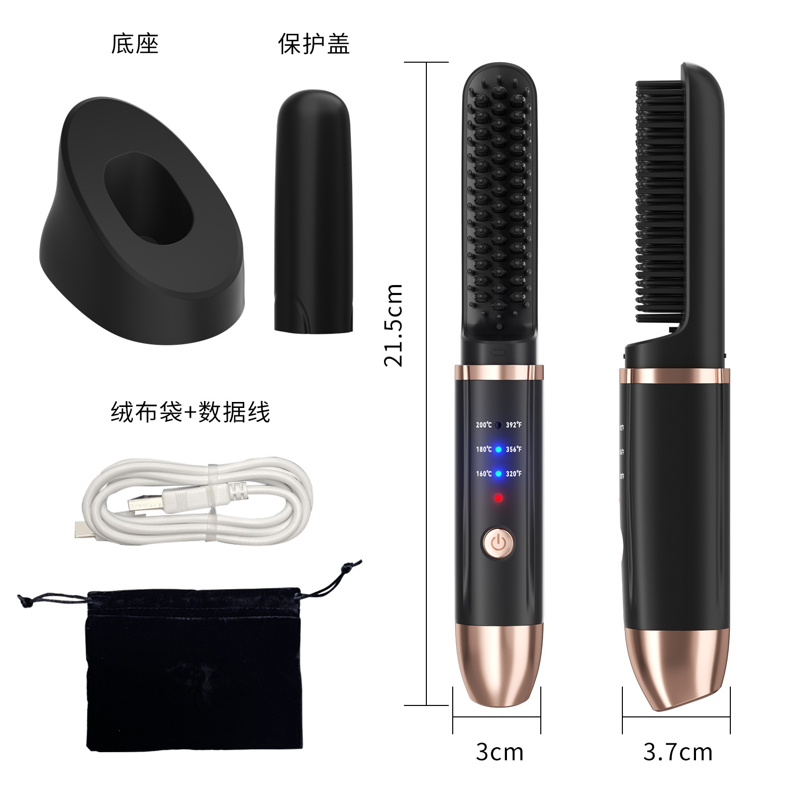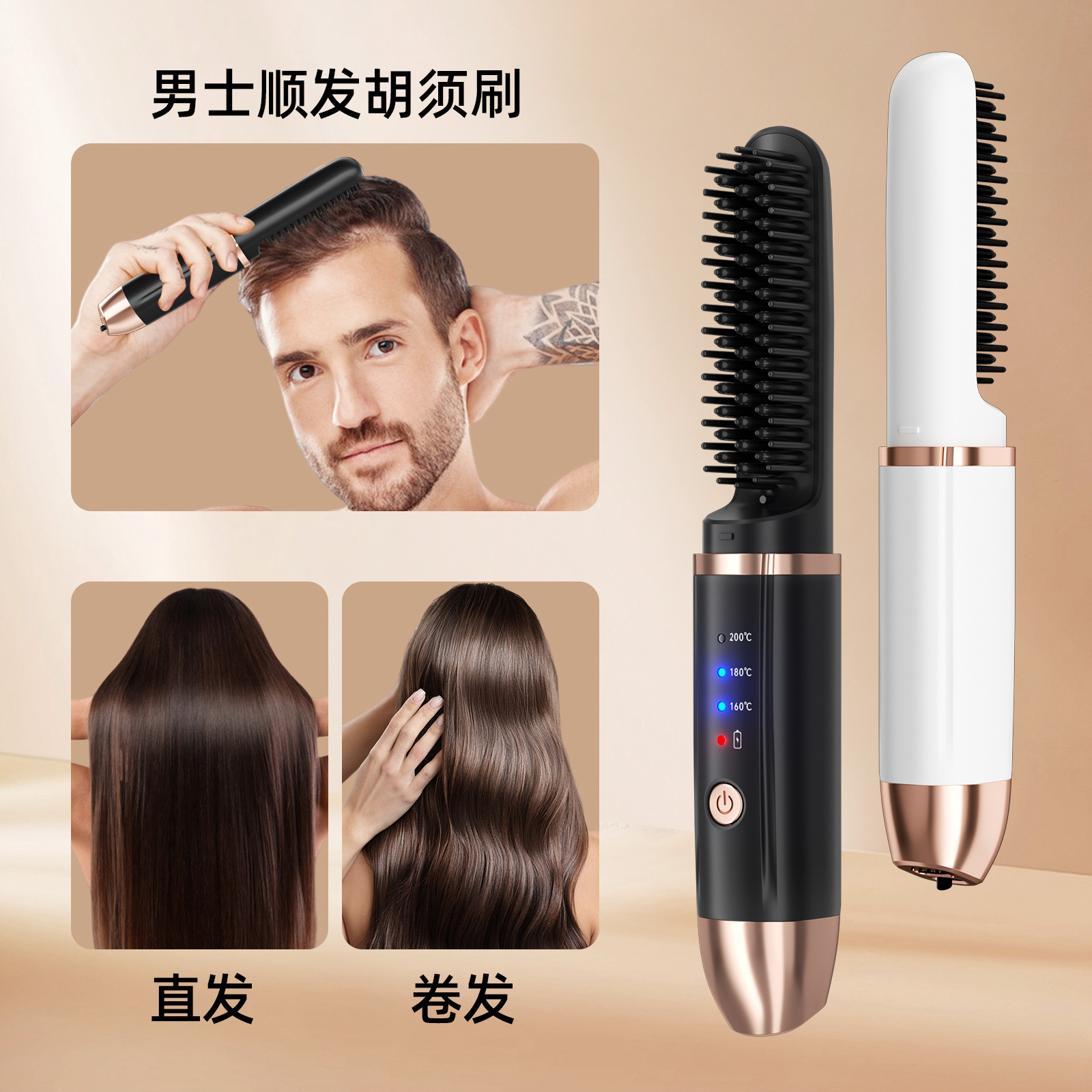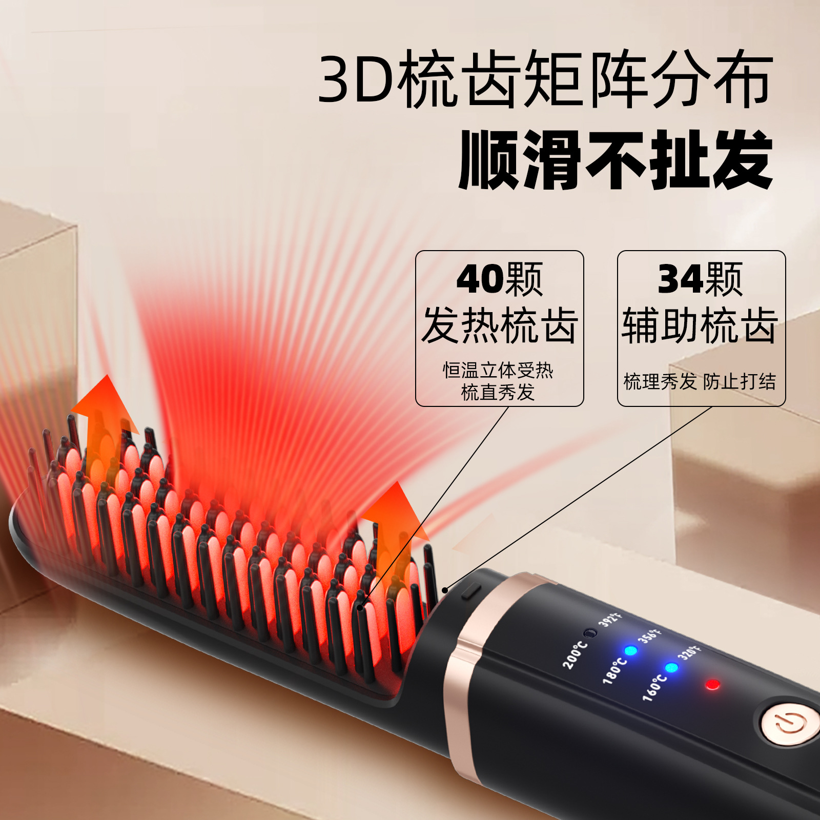 无线直发梳跨境新品便携式直发梳负离子不伤发直卷两用直发器