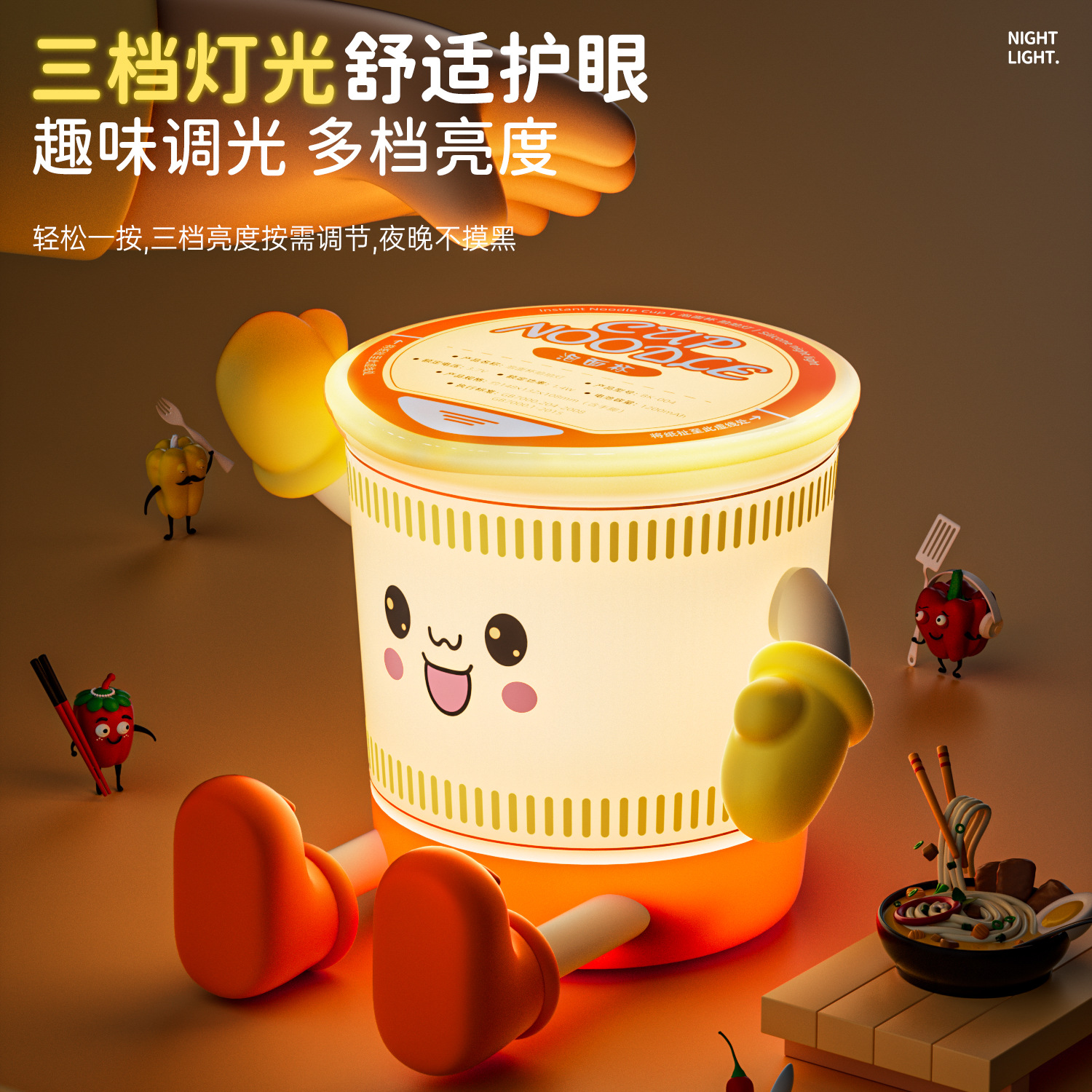 泡面杯小夜灯 女生情人节礼物创意摆件充电床头喂奶硅胶拍拍灯