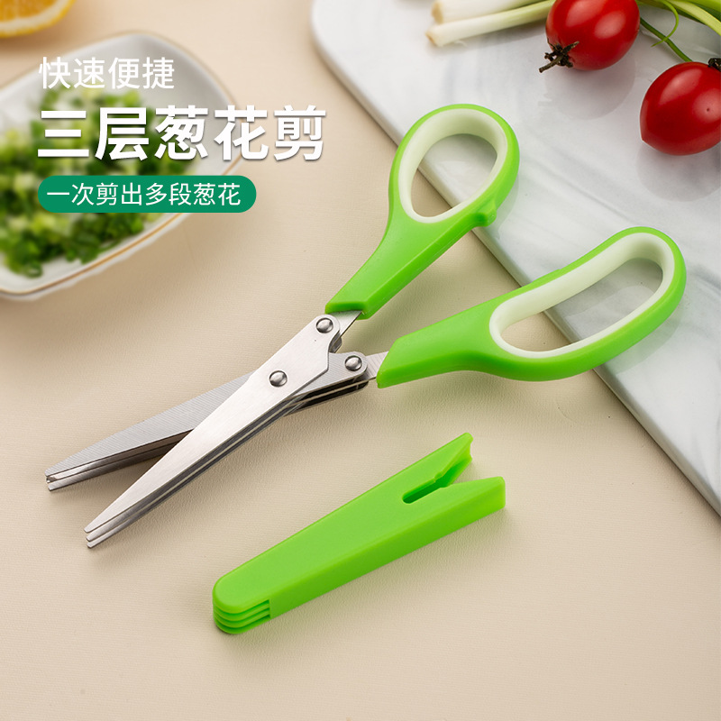 不锈钢葱花剪小孩辅食剪刀香草蔬菜剪刀多层碎纸剪 多功能三层剪
