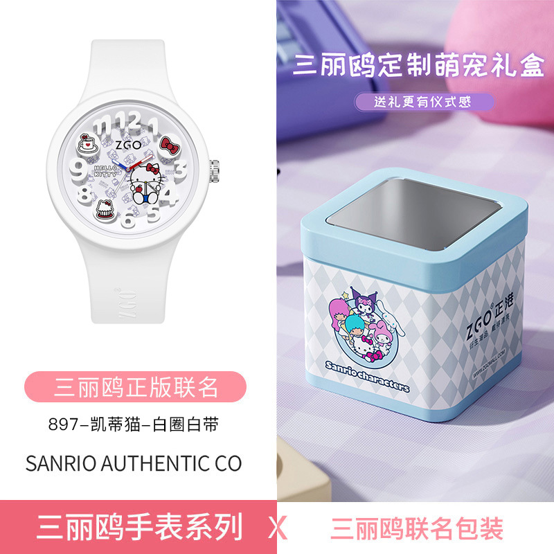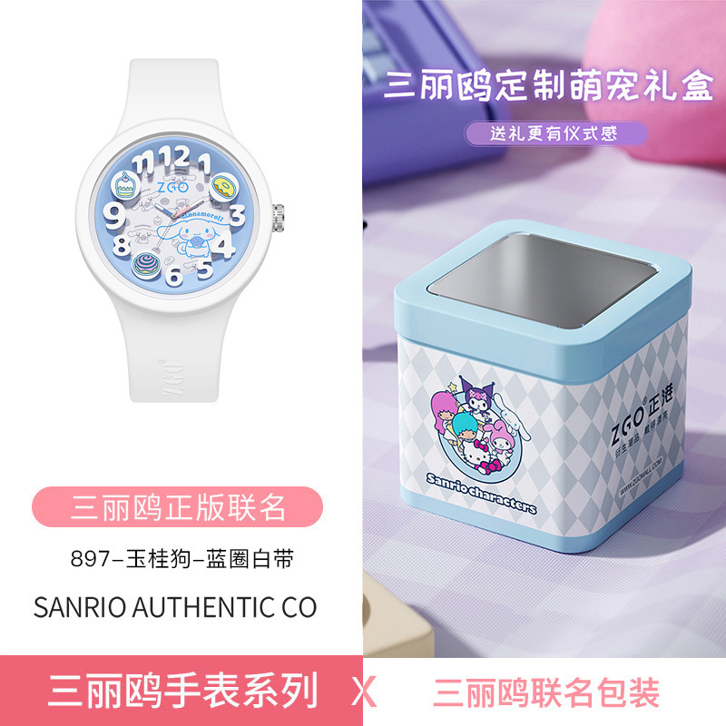 正港三丽鸥正版联名儿童手表女可爱玉桂狗防水学生果冻石英表女生