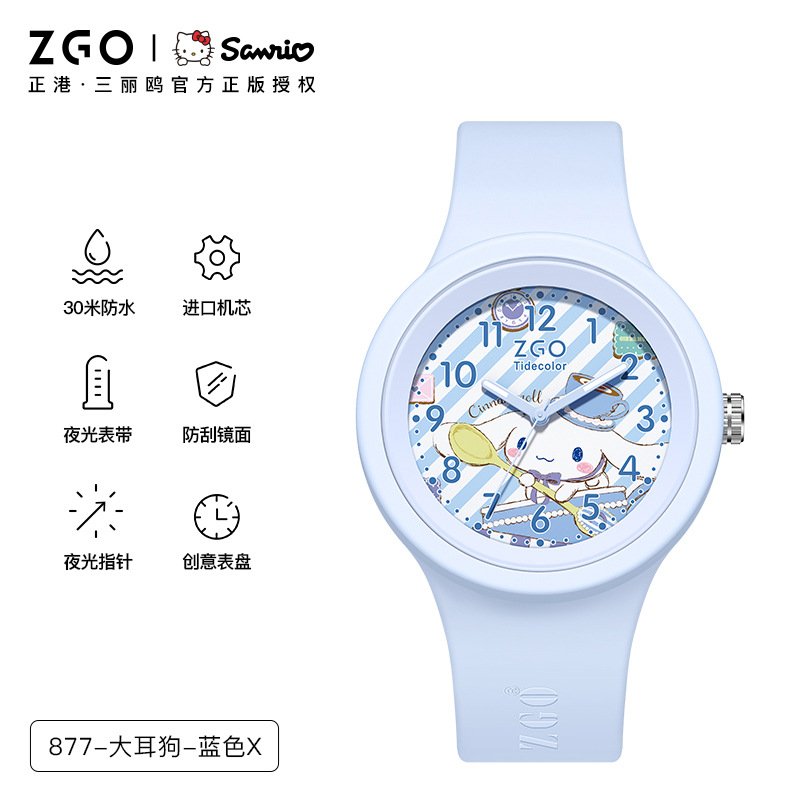 正港三丽鸥联名玉桂狗儿童手表女学生女孩卡通夜光防水硅胶石英表