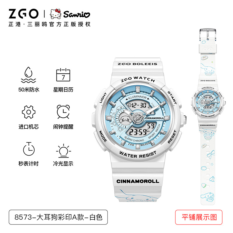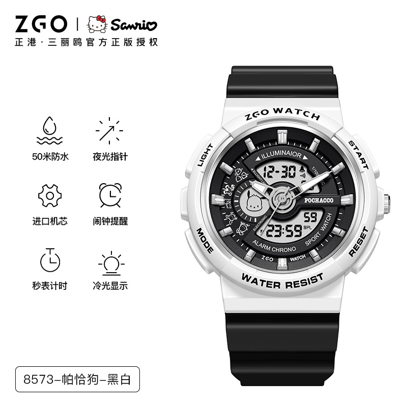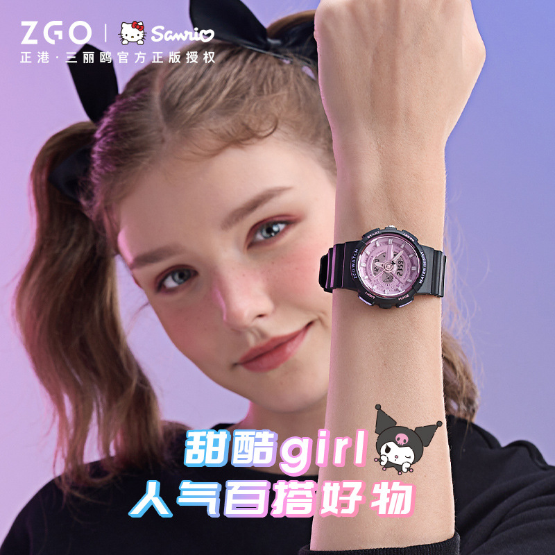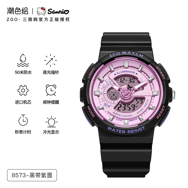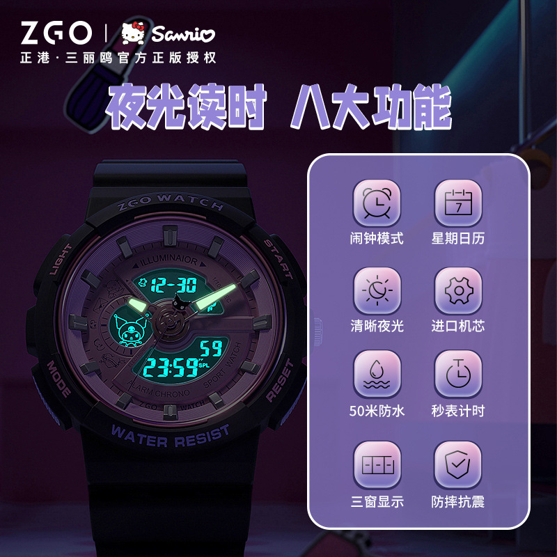 正港三丽鸥手表学生初高中女孩夜光防水双显运动腕表儿童电子表男