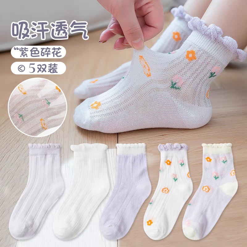 春秋新款女童袜子薄款卡通透气儿童中筒袜男童可爱网眼童袜夏批发