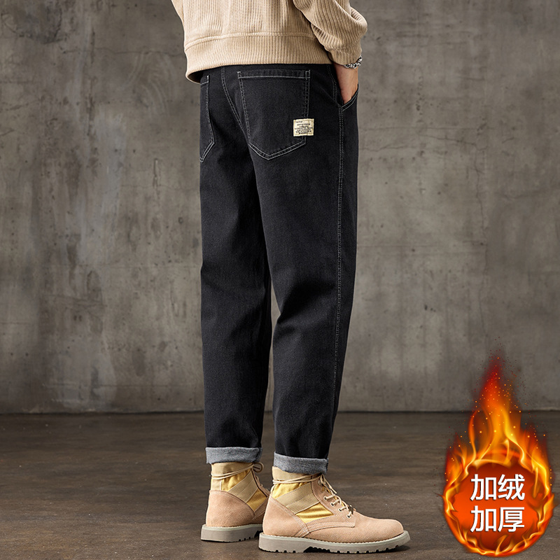 秋冬新款宽松哈伦微锥小直筒男士复古美式潮牌百搭弹力牛仔裤男