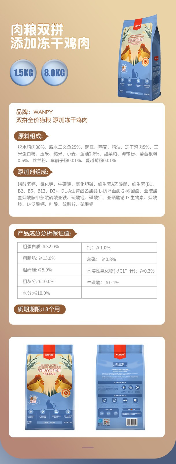 顽皮冻干双拼猫粮全价全期猫粮添加三文鱼鸡肉冻干猫咪主粮