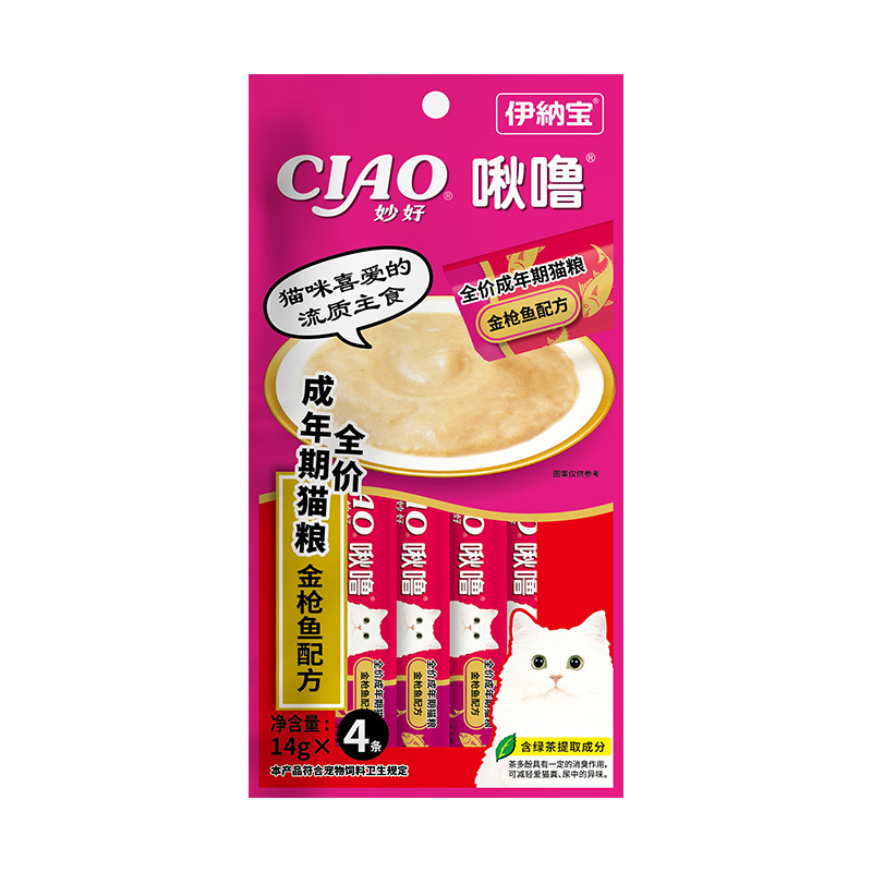 伊纳宝ciao啾噜零食妙好猫条营养小鱼干成猫咪主食罐头鲜湿粮4支