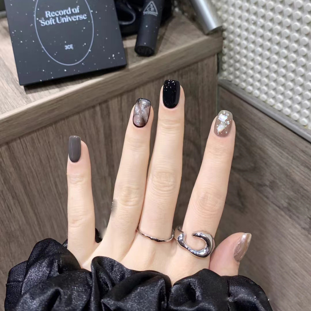 暗黑公主风穿戴式假指甲贴片可拆卸重复甲片贴片成品光疗短方甲片