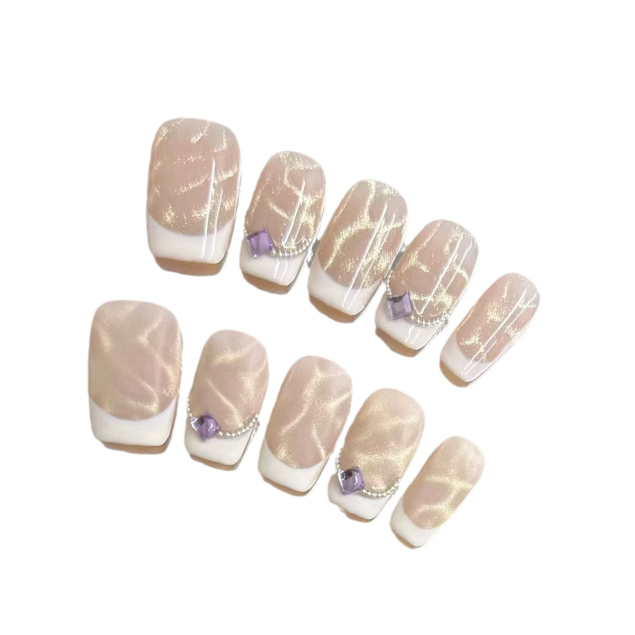 纯手工穿戴甲波纹猫眼法式光疗甲爆闪显白高级感气质百搭学生美甲