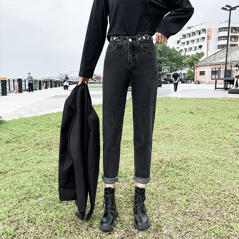 高腰牛仔裤女哈伦裤夏季韩版新款宽松显瘦九分直筒老爹裤潮