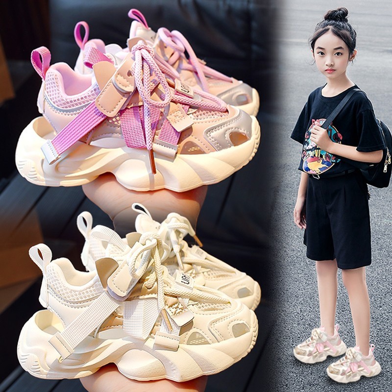 童鞋女童凉鞋2025新款夏季镂空儿童网鞋中大童女孩软底运动小白鞋