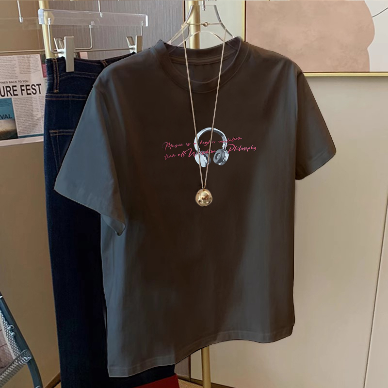 2025夏季新款纯棉灰色短袖t恤女设计感小众宽松爆款减龄正肩上衣