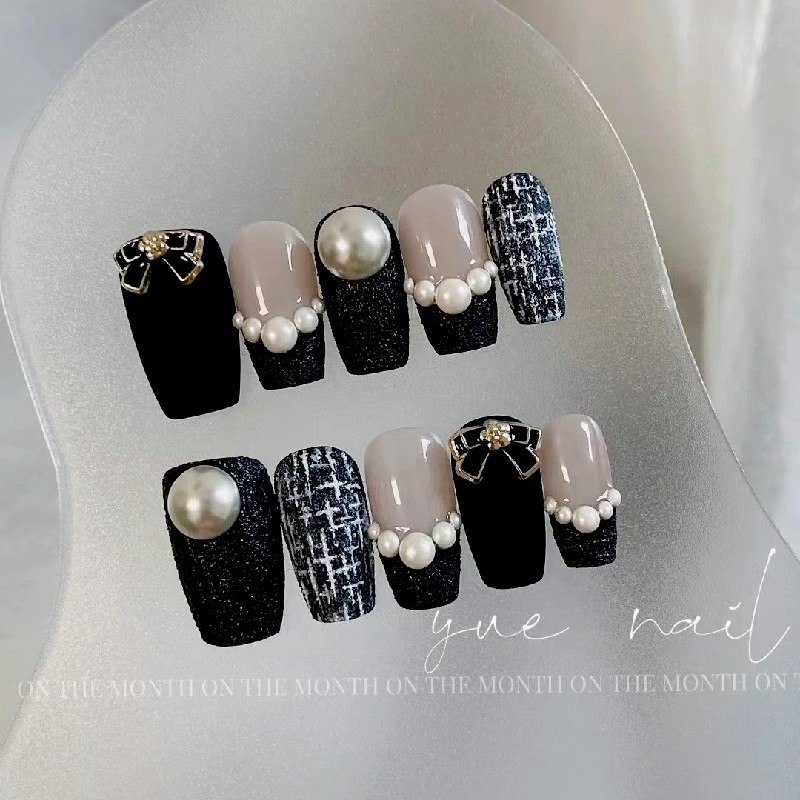 纯手工穿戴甲珍珠小香风复古高档千金轻奢显白可拆卸光疗美甲贴
