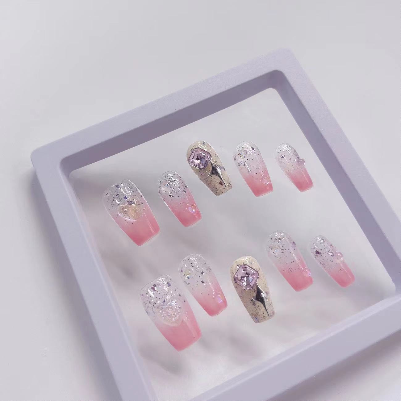 纯手工穿戴甲粉色渐变爱心水果硬糖小清新甲片抖音爆款穿戴甲批发