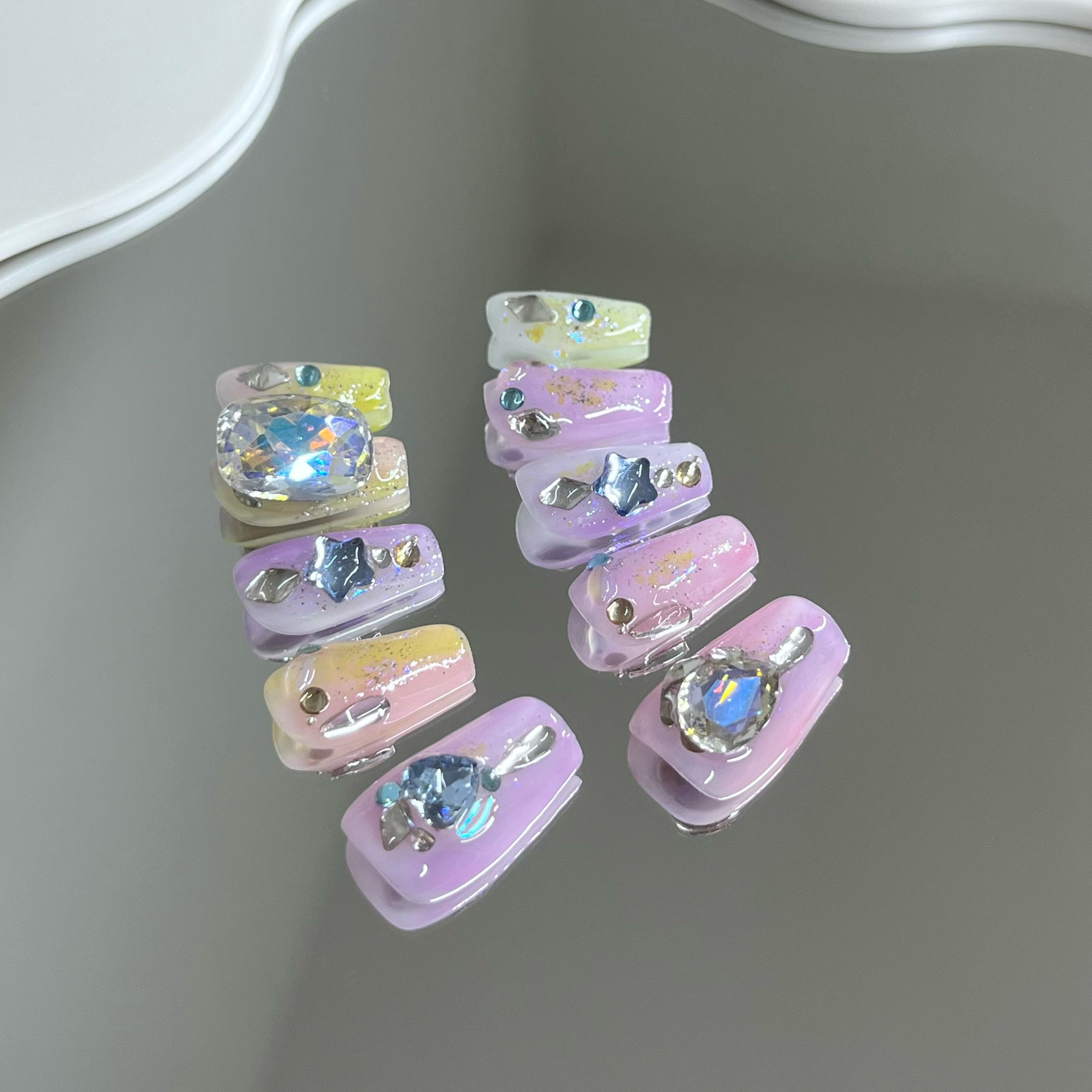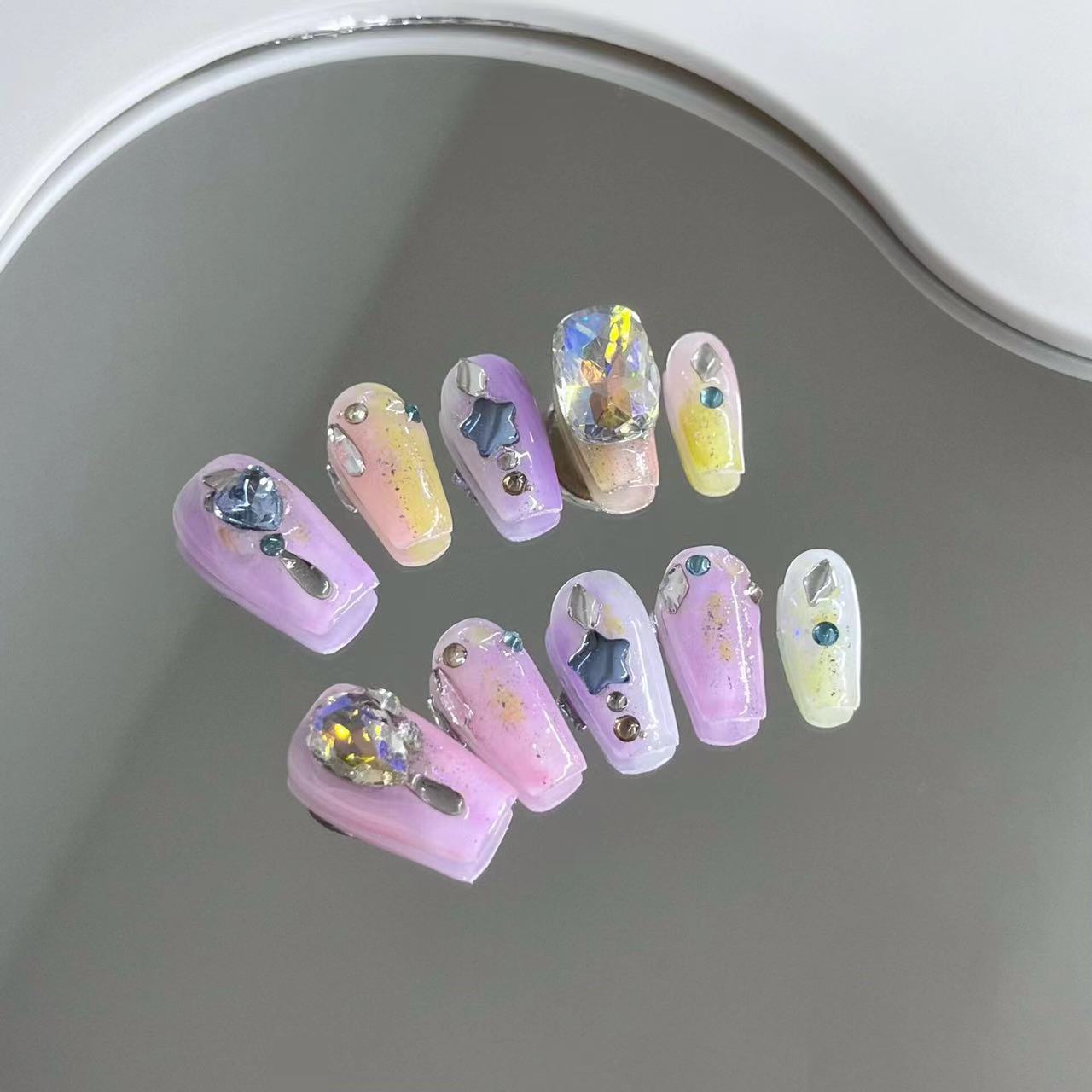 纯手工穿戴甲梦幻甜心彩色多巴胺渐变贴钻成品美甲贴片春夏美甲片