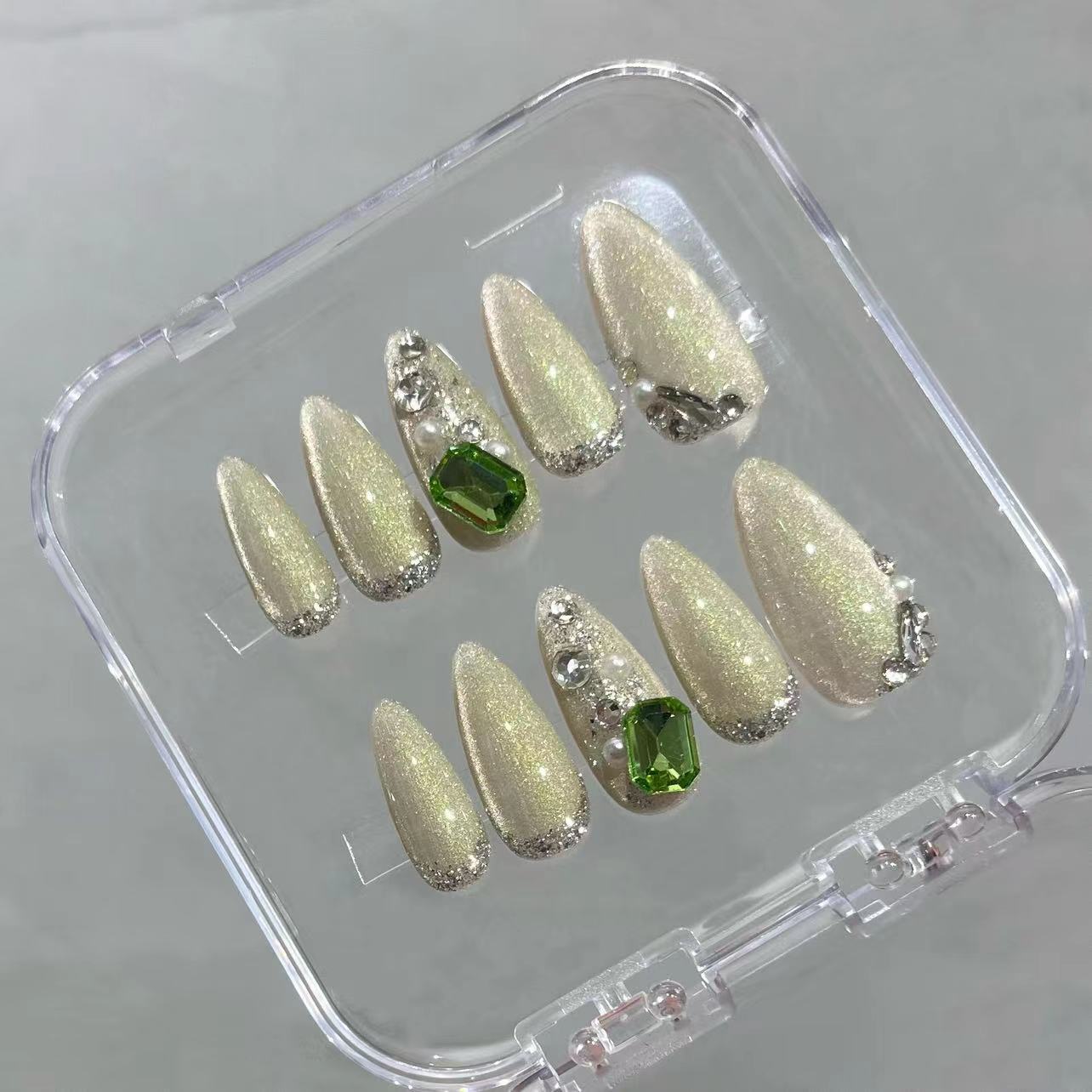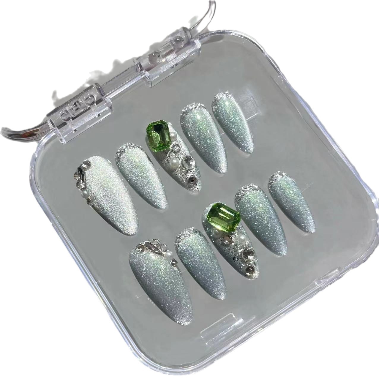光变猫眼纯手工穿戴甲可变色爆闪异型钻美甲显白高级感可拆卸美甲