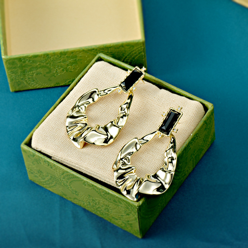 欧美夸张设计师褶皱耳环水滴形金属高质量时尚耳饰批发银针耳钉女