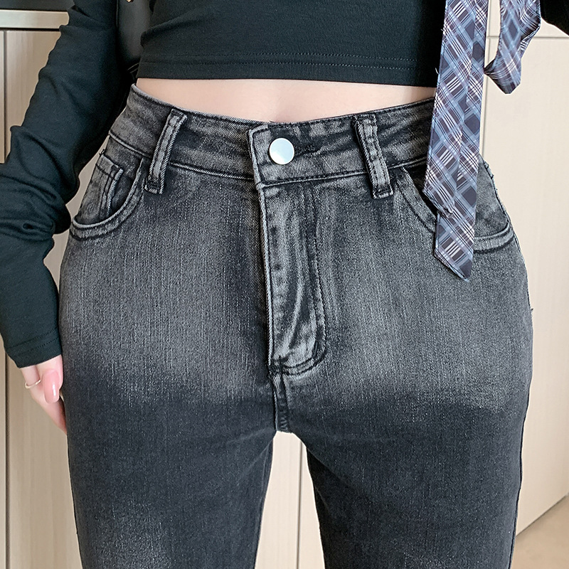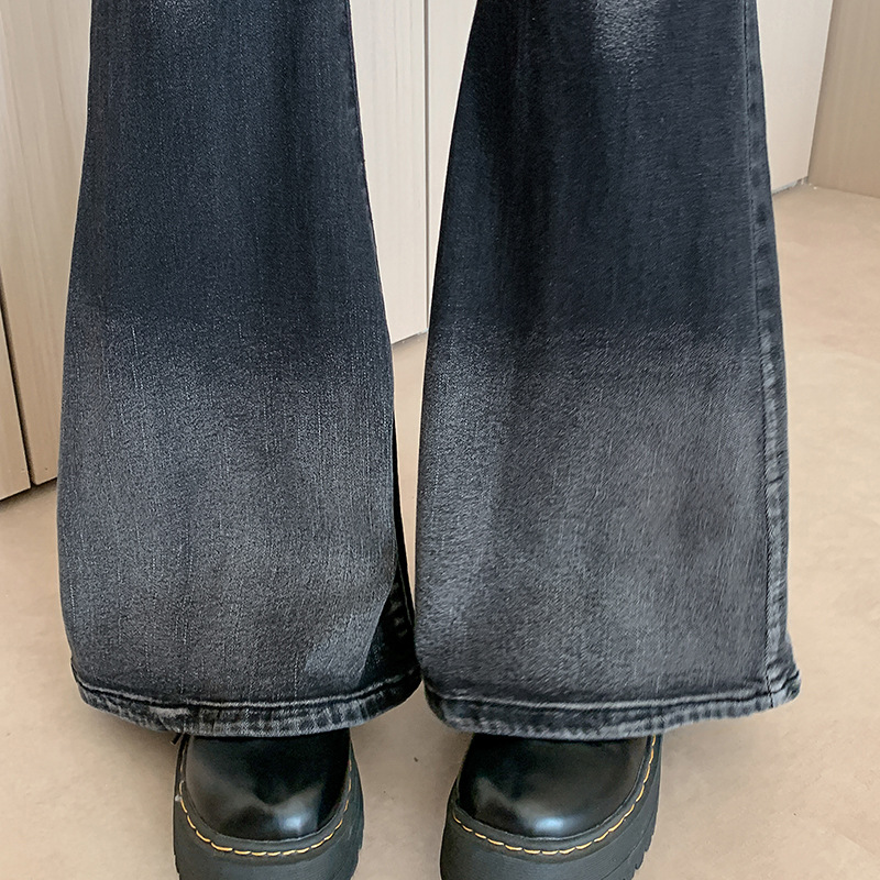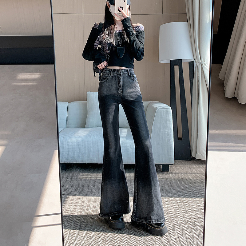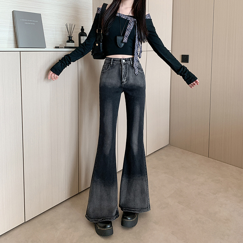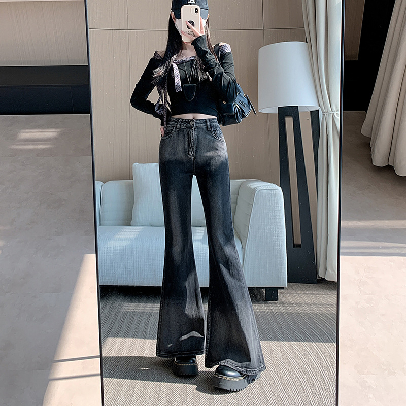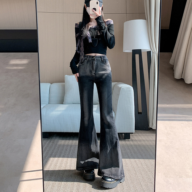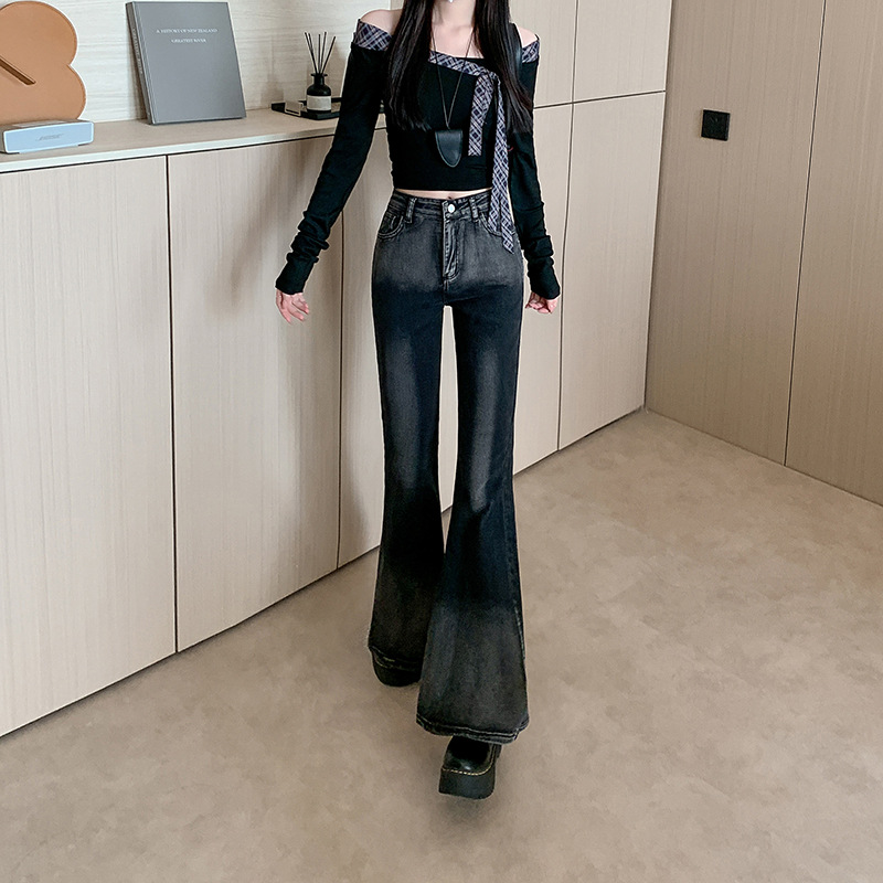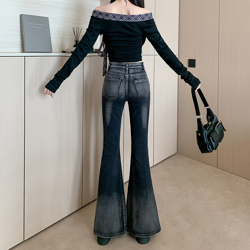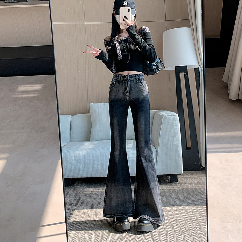 实拍实价~复古渐变色微喇牛仔裤女设计感辣妹高腰弹力修身马蹄裤