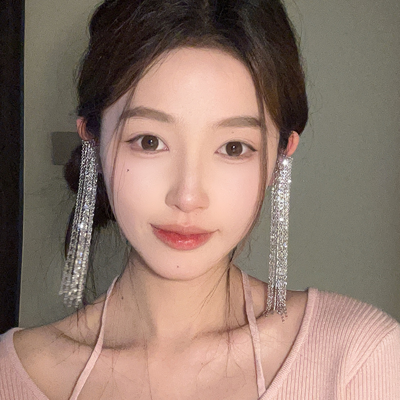 个性夸张超闪长款流苏耳夹新款小众设计感无耳洞耳骨夹耳饰