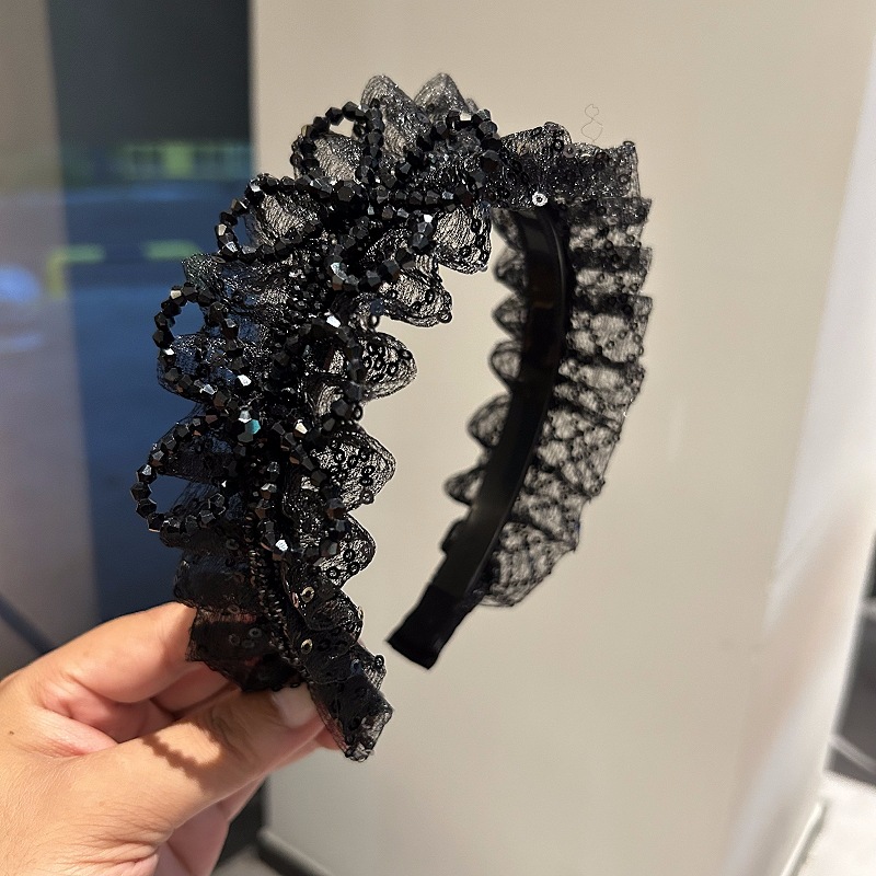 蝶夜闪耀时尚百搭发箍女宽边气质防滑蕾丝显发量高颅顶头箍头饰