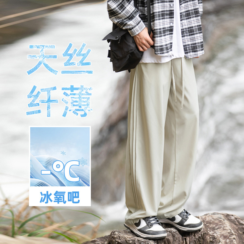 冰丝凉感纯色休闲裤男夏款空调裤垂感微弹质感百搭宽松直筒长裤子
