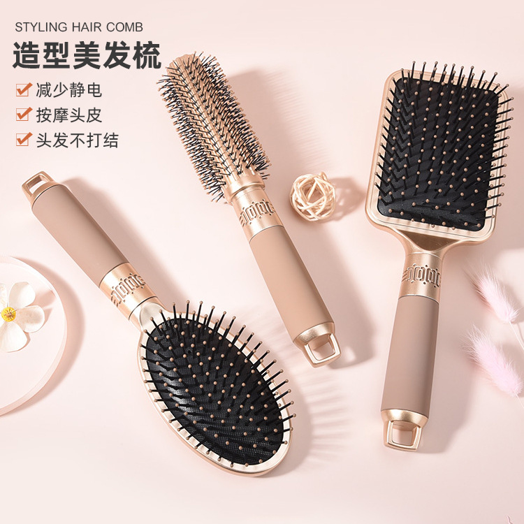 金色梳子气垫梳气囊梳子家用造型梳排骨梳美发直卷两用美发梳