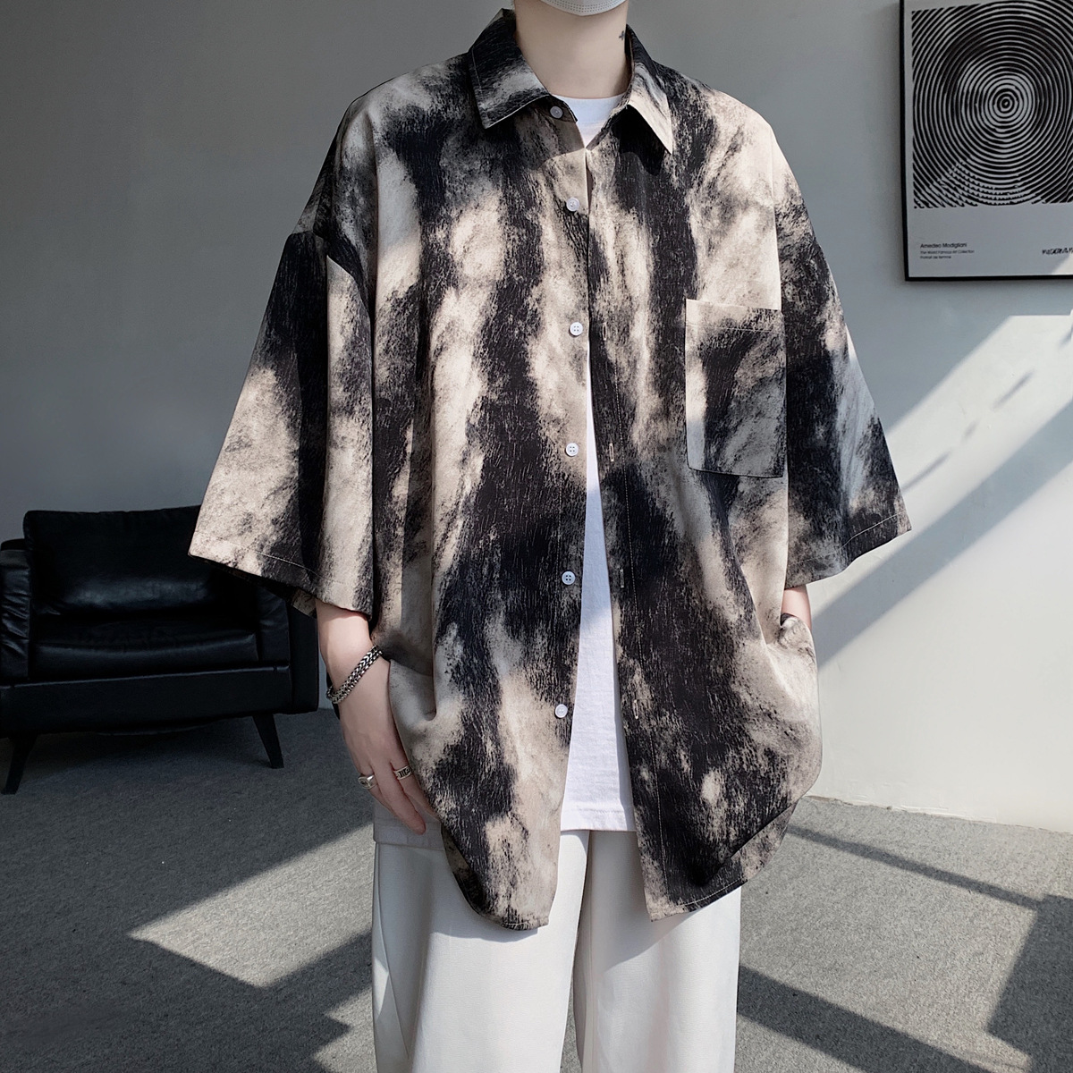 夏季新款冰丝短袖衬衫男士oversize港风ins气质薄款衬衣外套