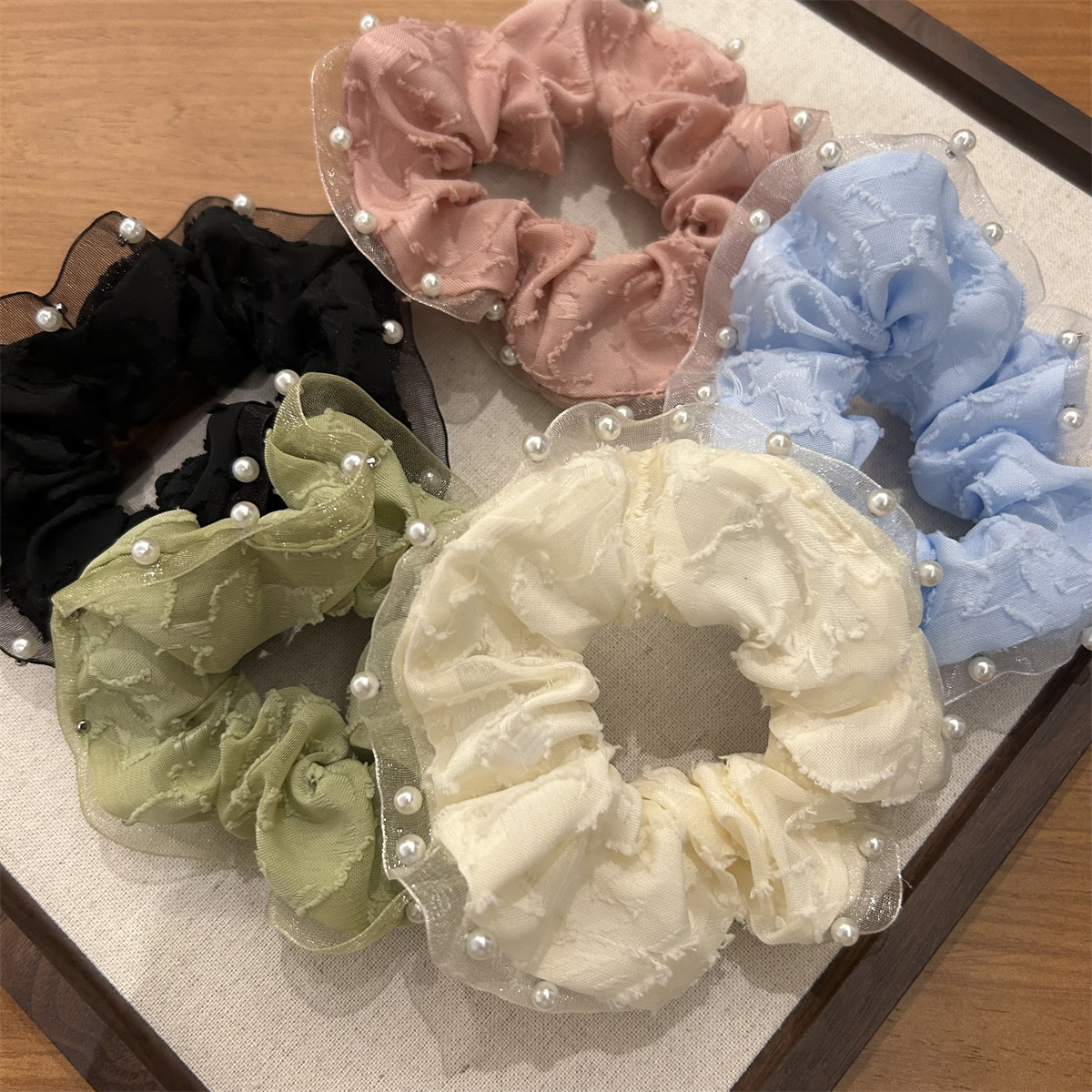欧根纱珍珠大肠圈发绳简约气质复古头绳韩版肥肠发圈头饰马尾皮筋