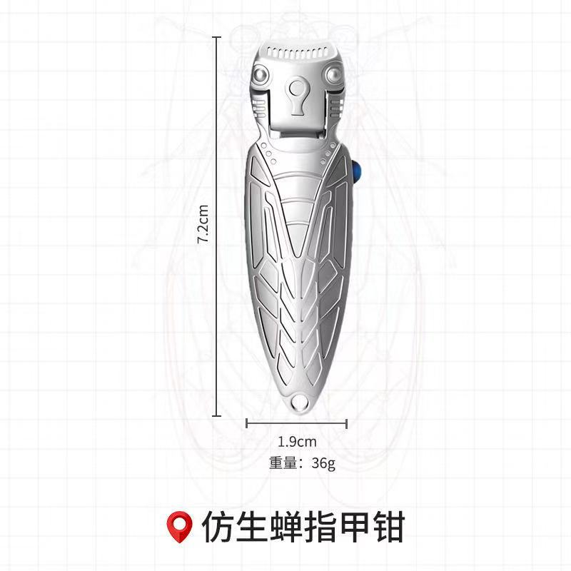 创意金蝉指甲刀不锈钢大开口大号单个指甲钳防飞溅粉末压铸指甲剪