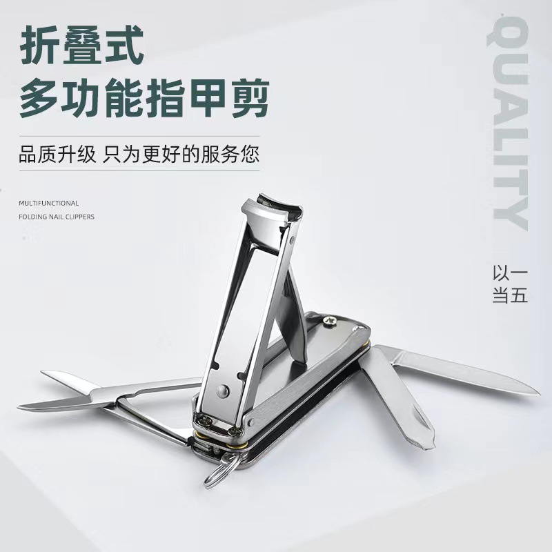 多功能指甲刀不锈钢折叠指甲刀防飞溅指甲剪带锉片指甲钳