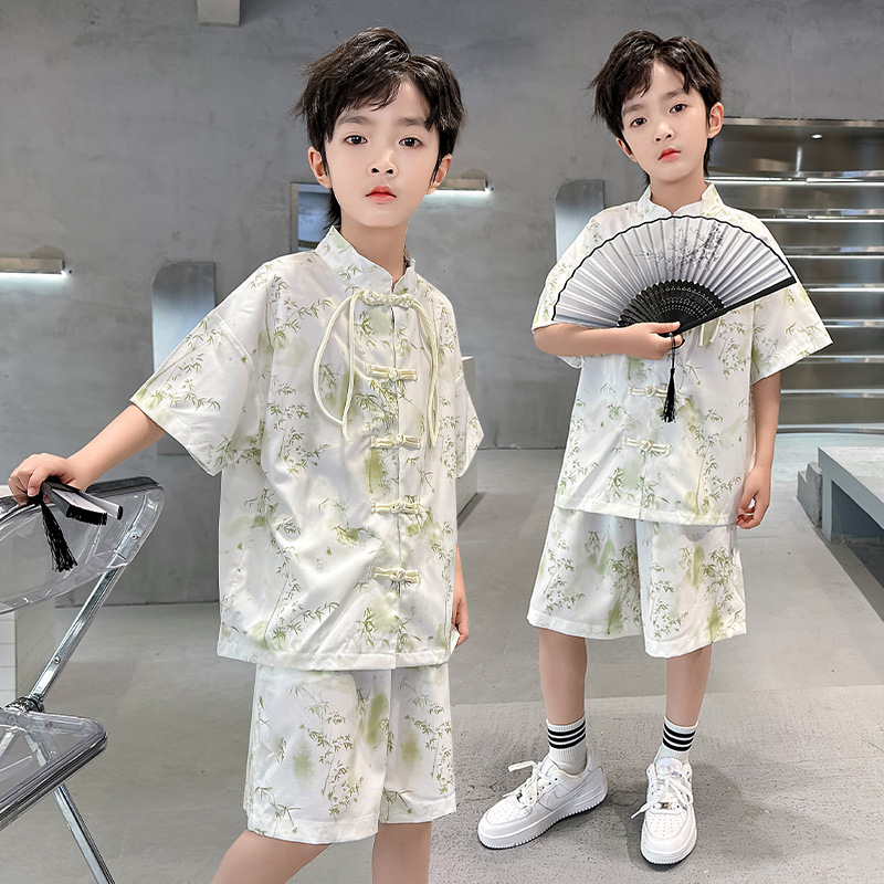 汉服男童夏季新款高端国风青竹短袖国潮唐装中式古风男孩套装