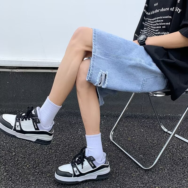 牛仔短裤男士五分中裤宽松直筒夏季薄款新款潮牌ins休闲裤子