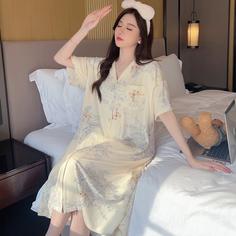六月份妈妈款新款现货夏季莫代尔孕妇哺乳睡裙