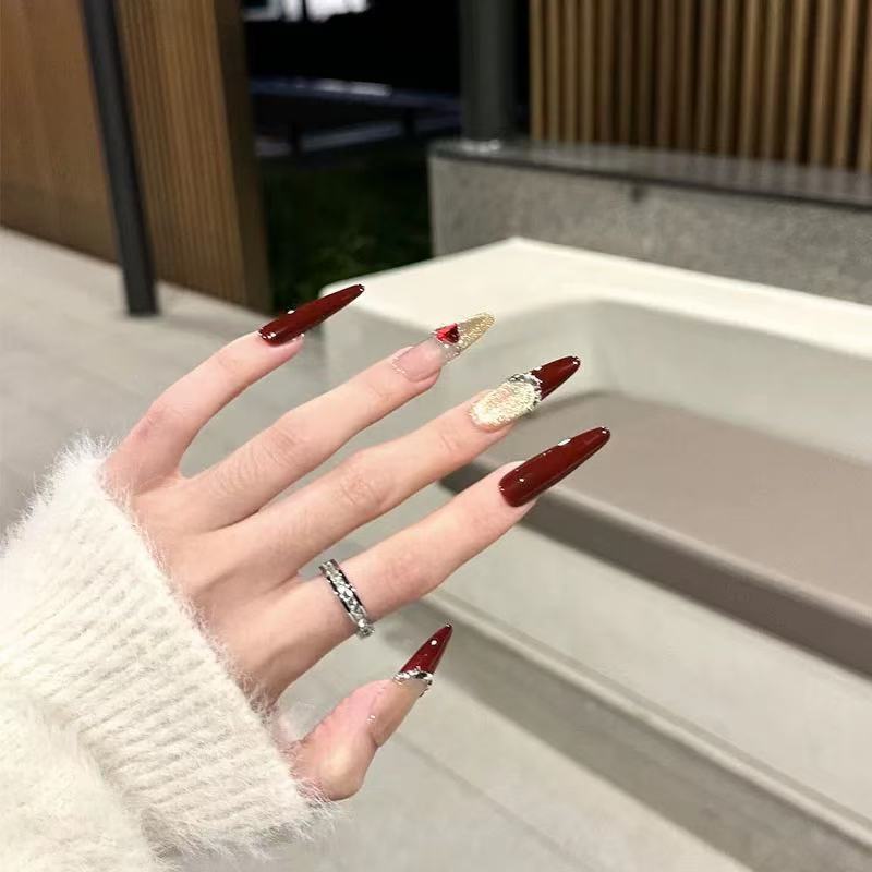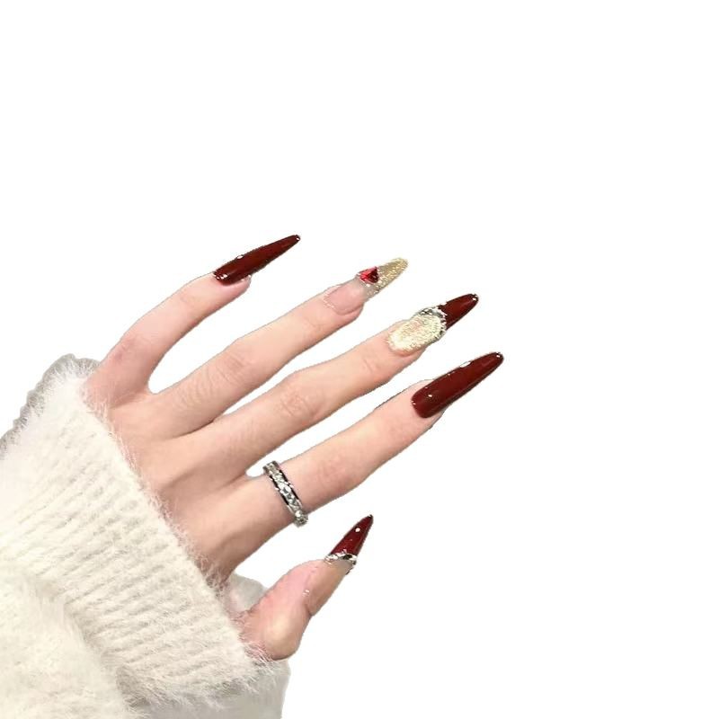 手工穿戴甲安卡拉御姐风秋冬新年法式猫眼爆闪红色显白高级感美甲